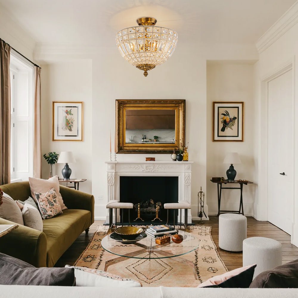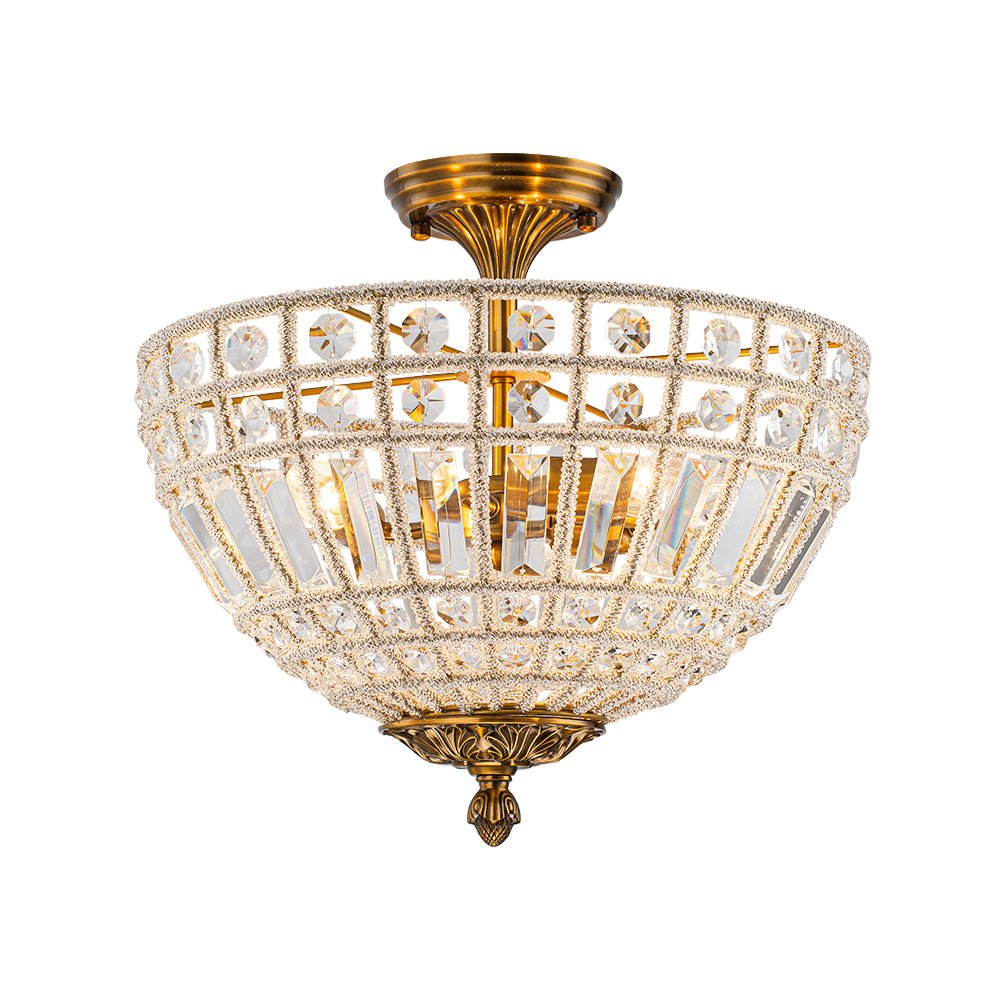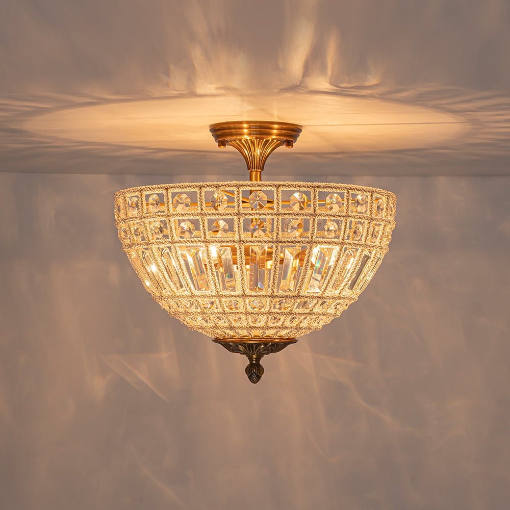 Victorian Style • Metal • Brass Finish • Flush Mount • Crystal Glass • Ceiling Light • Mid-century Design