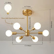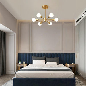 Without Glass Shade • Contemporary • G80 Opal Bulbs Not Included • Brass Finish • Large • Sputnik Arms • Chandelier • 6-light