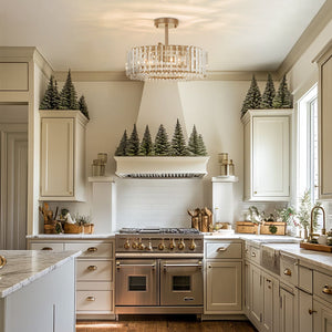 Come with a modern mid-century style, the mid-century modern chandelier will be a stunning addition to your rooms like bedroom, living room, and bedroom. Featuring brass/crystal accents, it refreshes space perfectly!