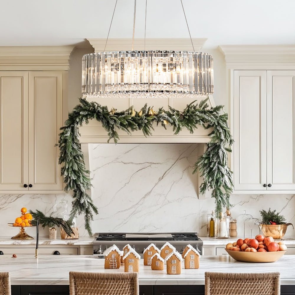 - Höhenverstellbarer runder Kristallkronleuchter mit 6 Lichtern