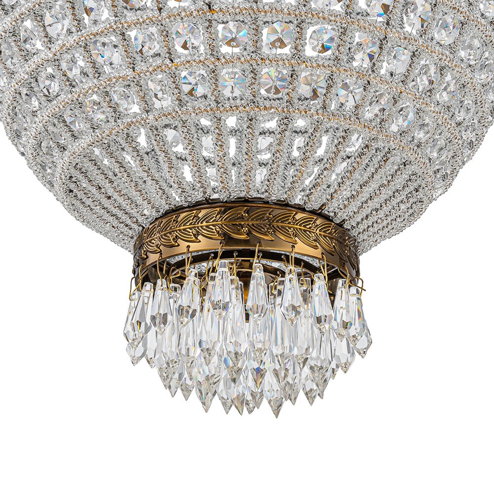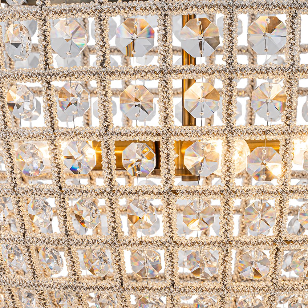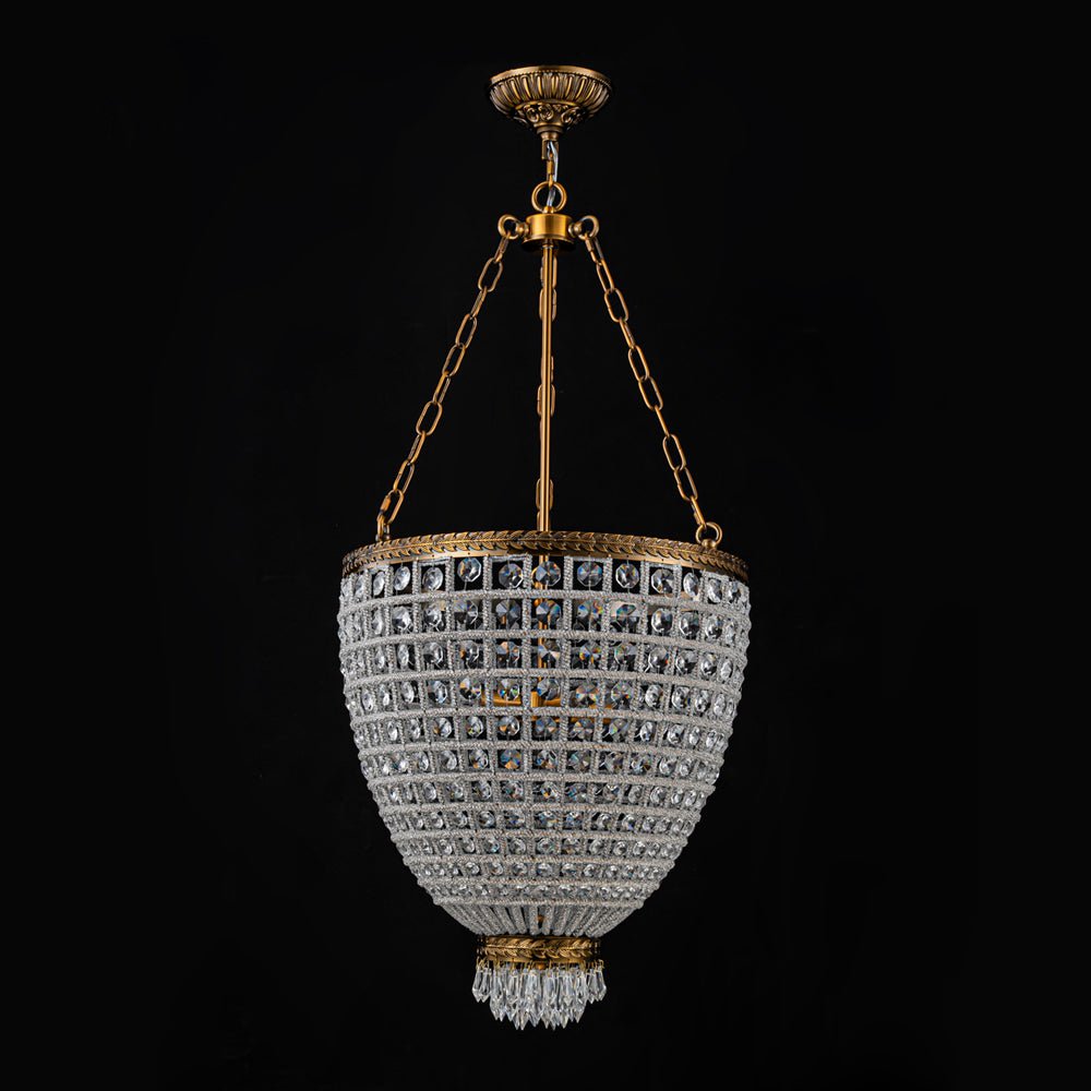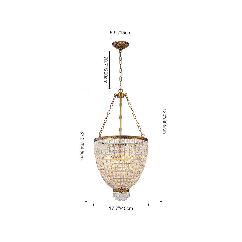 Glamourös und modern • Metall- und Kristalldesign • 4-flammig • Antikmessing-Finish • Dimmbarer Korb-Kronleuchter • CE-gelistet