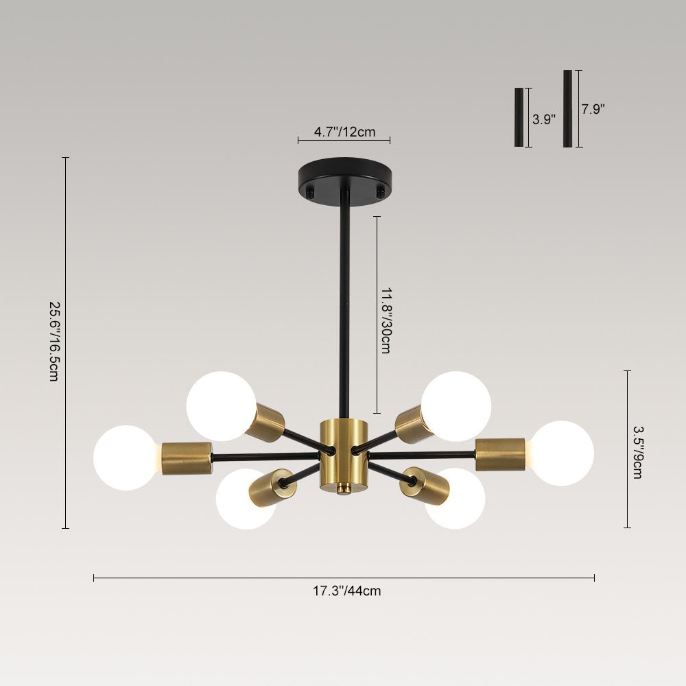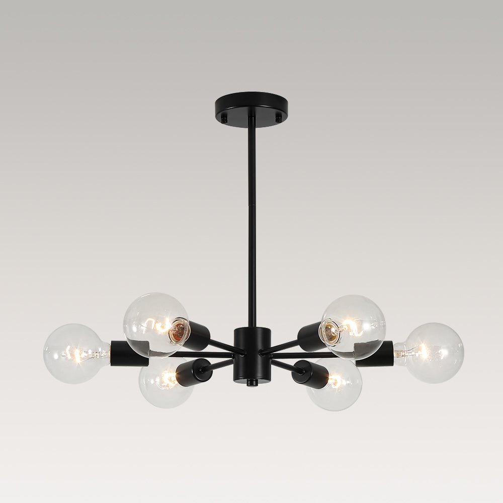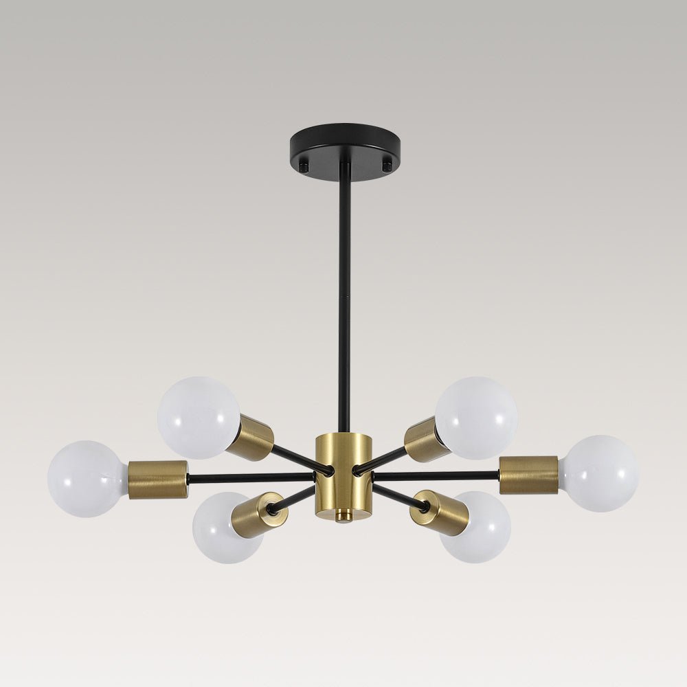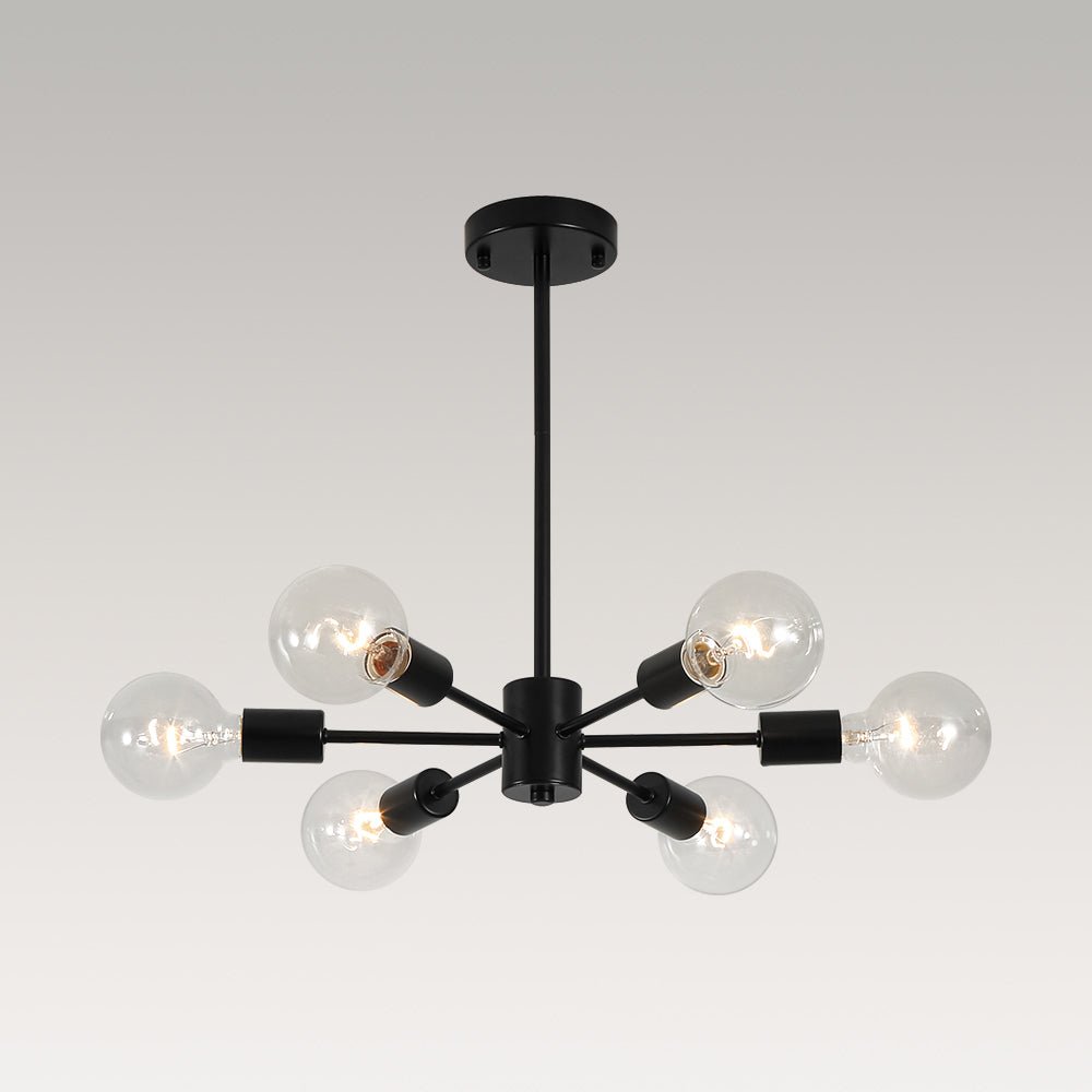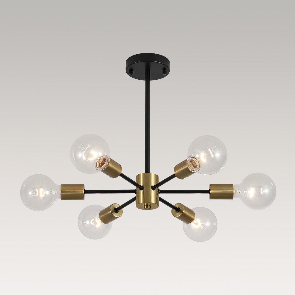Dieser sechsflammige Kronleuchter im klassischen Sputnik-Design verleiht Ihrem Zuhause modernes Flair. Die Leuchte hängt an einem runden Baldachin und ist an sechs separaten, rohrförmigen Armen befestigt. An beiden Enden dieser Arme befindet sich eine freiliegende Glühbirne für einen modernen Look. Der Kronleuchter ist für Glühbirnen bis zu 25 Watt ausgelegt (nicht im Lieferumfang enthalten). Diese Leistung ist auch mit Dimmschaltern (nicht im Lieferumfang enthalten) kompatibel, sodass Sie die Helligkeit in Ihrem Raum individuell steuern können.