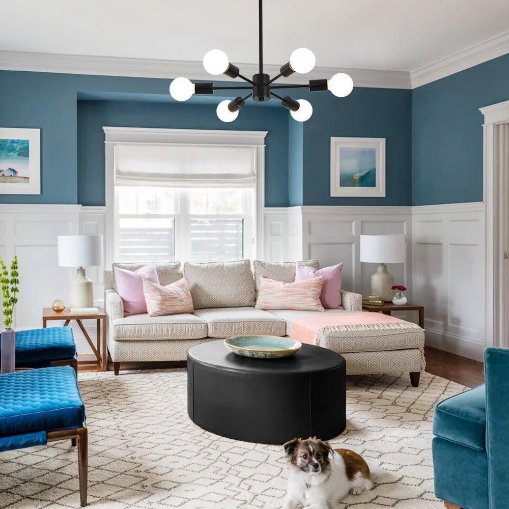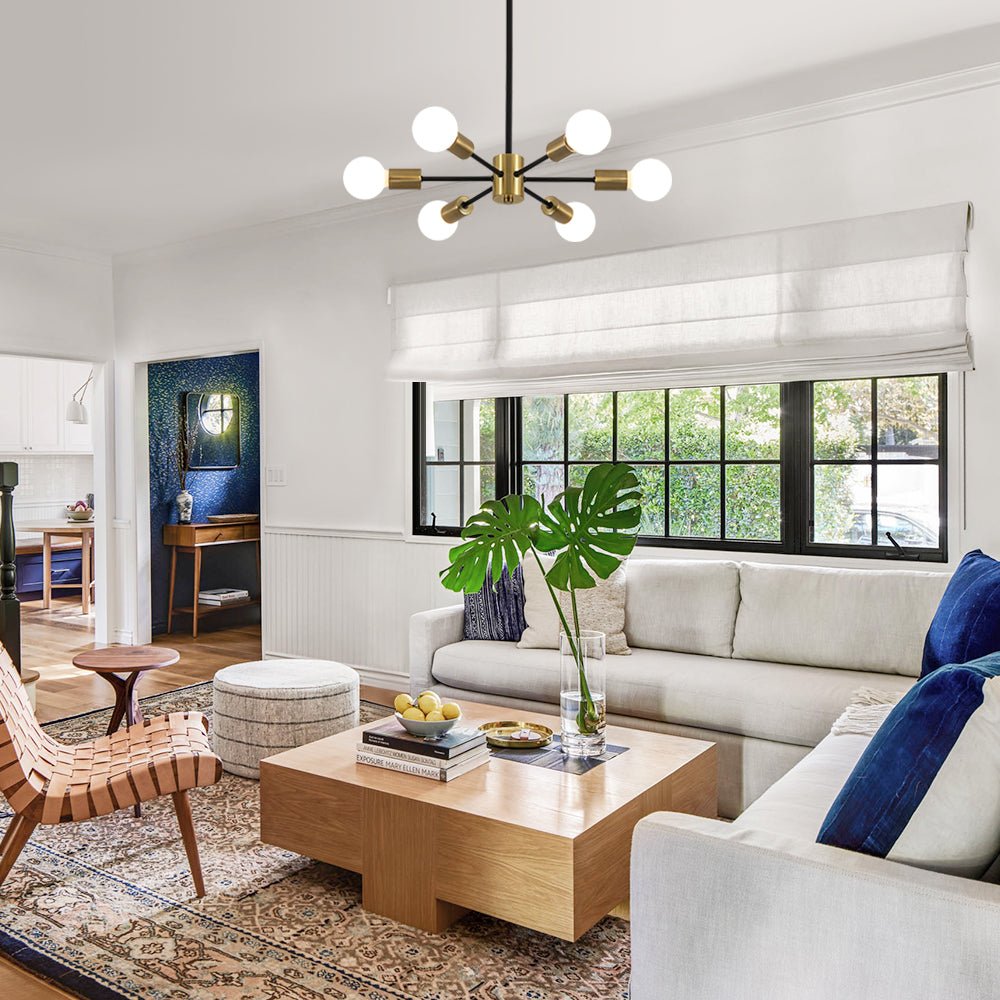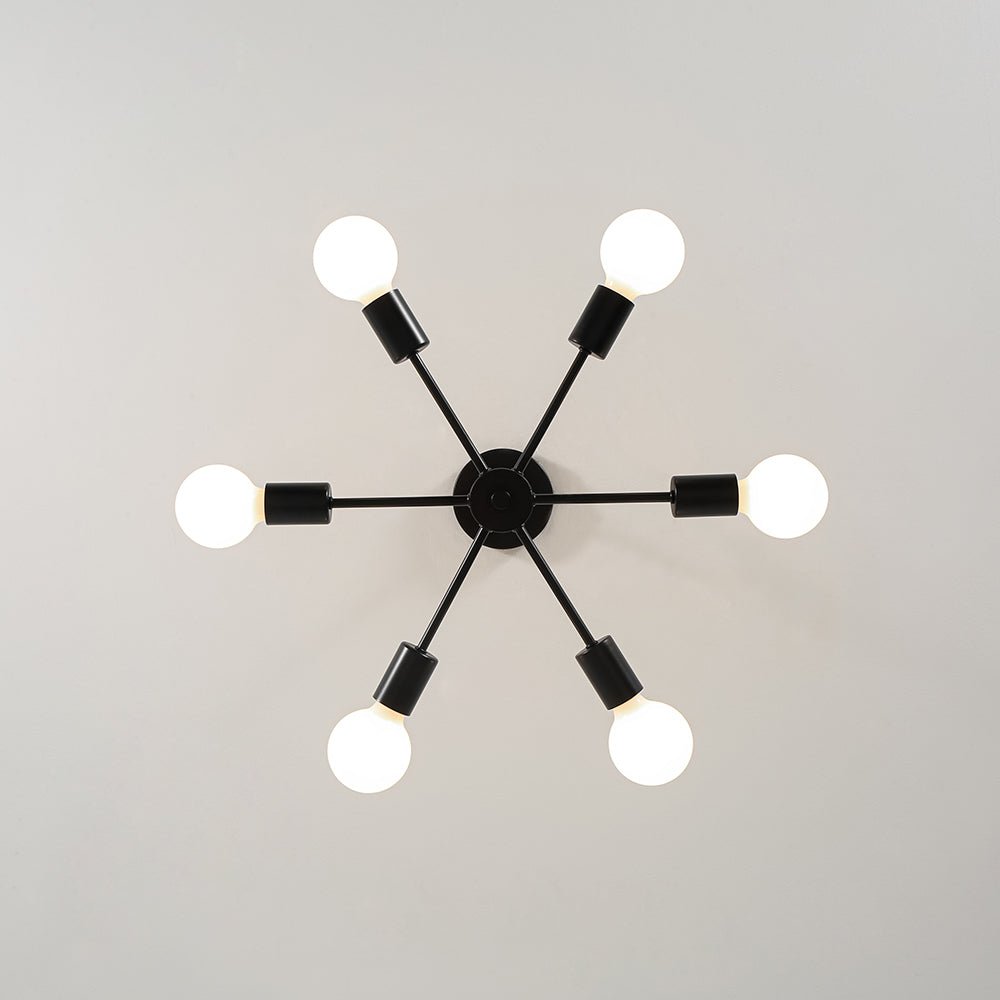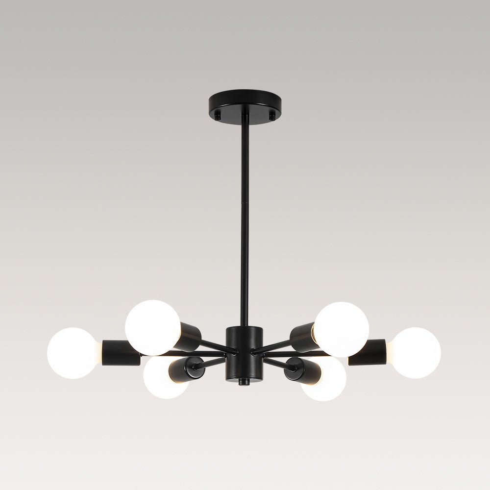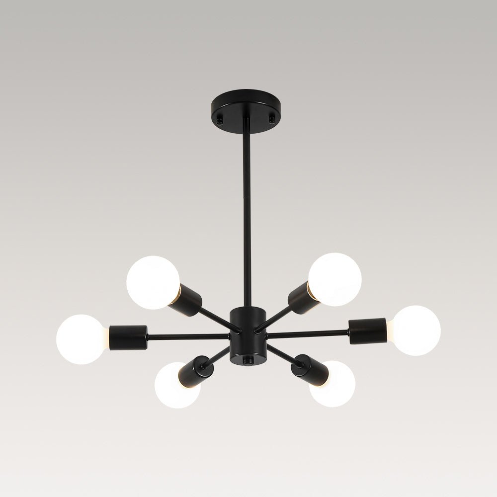 Dieser sechsflammige Kronleuchter im klassischen Sputnik-Design verleiht Ihrem Zuhause modernes Flair. Die Leuchte hängt an einem runden Baldachin und ist an sechs separaten, rohrförmigen Armen befestigt. An beiden Enden dieser Arme befindet sich eine freiliegende Glühbirne für einen modernen Look. Der Kronleuchter ist für Glühbirnen bis zu 25 Watt ausgelegt (nicht im Lieferumfang enthalten). Diese Leistung ist auch mit Dimmschaltern (nicht im Lieferumfang enthalten) kompatibel, sodass Sie die Helligkeit in Ihrem Raum individuell steuern können.