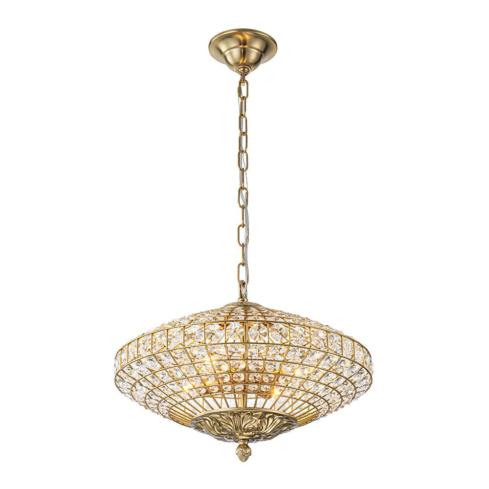 Glamourös und modern • Metall- und Kristalldesign • 4-flammig • Antikmessing-Finish • Kronleuchter • CE-gelistet