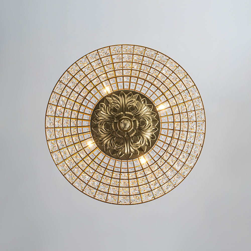 Diese rautenförmige Kristallleuchte erinnert an einen Schatz aus einem prächtigen Palast aus der Mitte des Jahrhunderts und verleiht jedem Raum raffinierte Eleganz. Ihr luftiger Eisenrahmen ist mit geschliffenen Kristallakzenten verziert, die das Licht einfangen und brechen und so für ein schillerndes Lichtspiel sorgen. Vier verstellbare Fassungen ermöglichen die Ausrichtung des Lichts und sorgen so für Stil und Funktionalität. Mit edlem Messing an Baldachin und Hängekette verbindet diese Leuchte Luxus mit Vintage-Charme und macht den Diamant-Kronleuchter zu einem echten Statement.