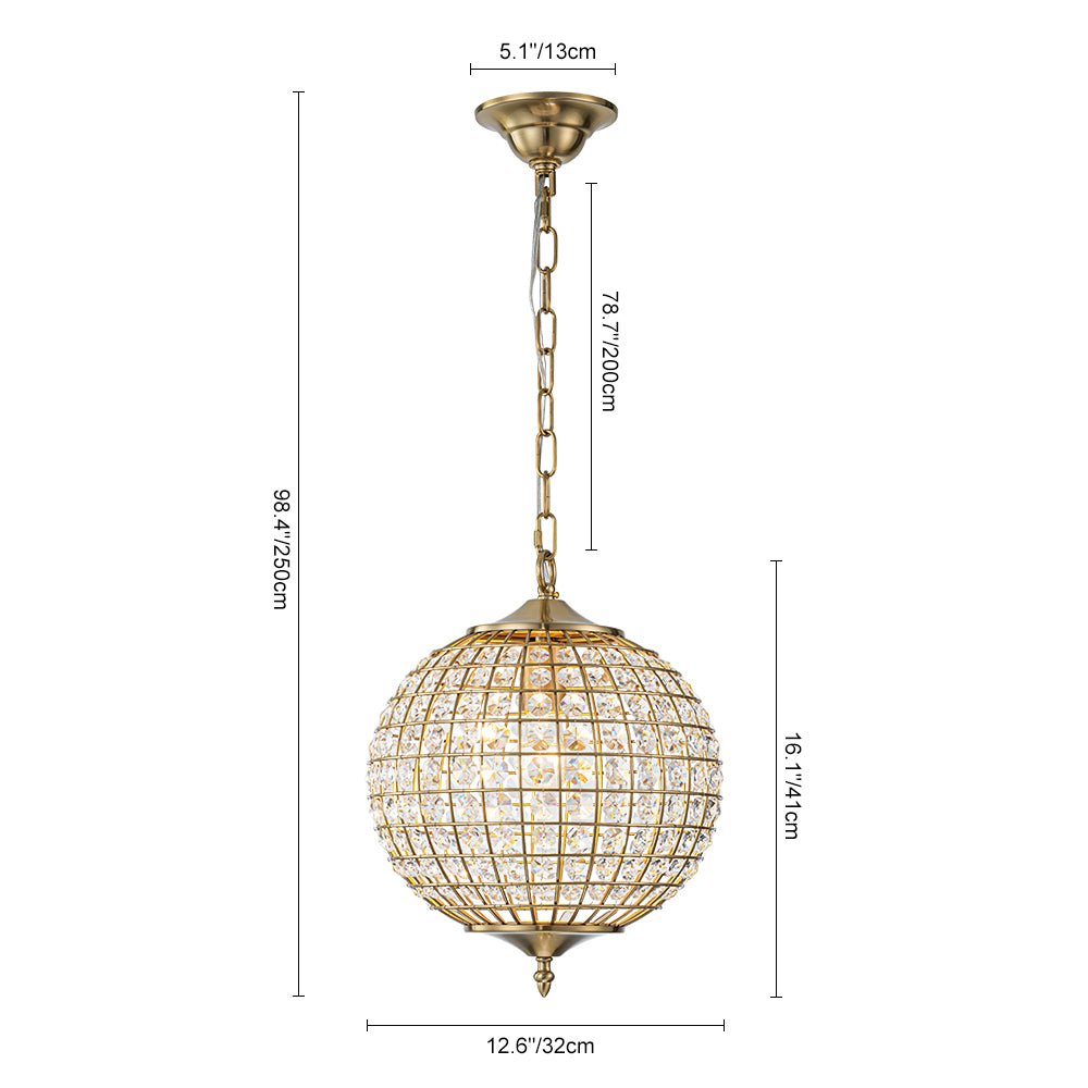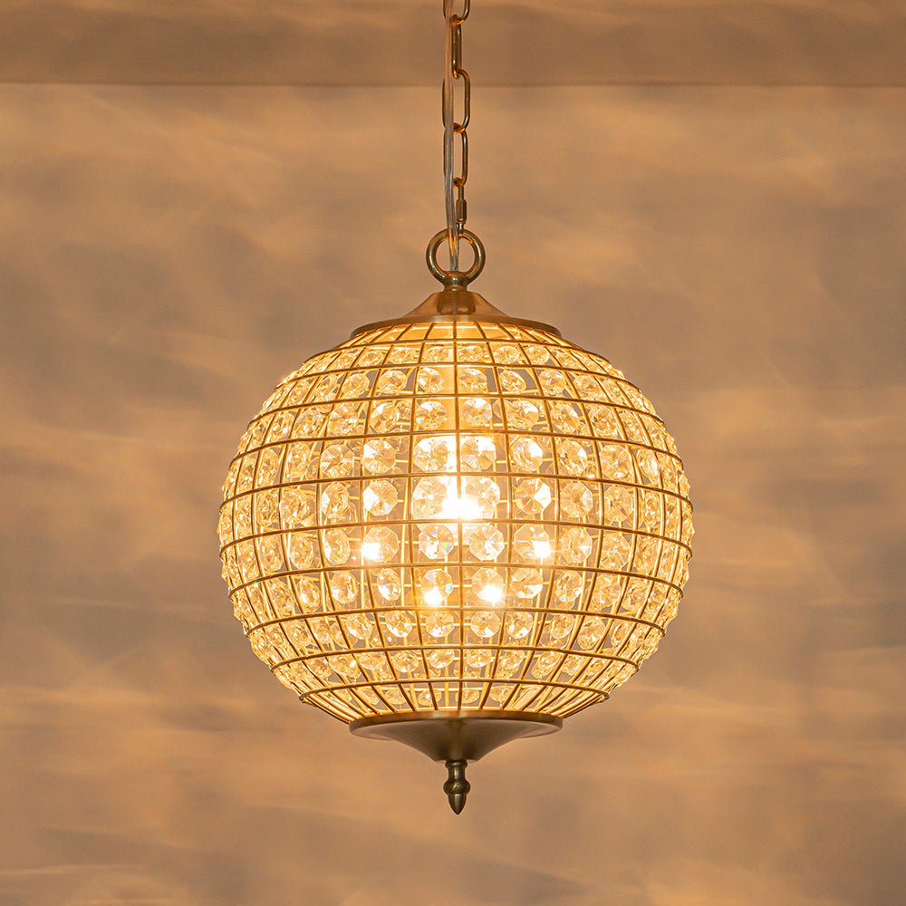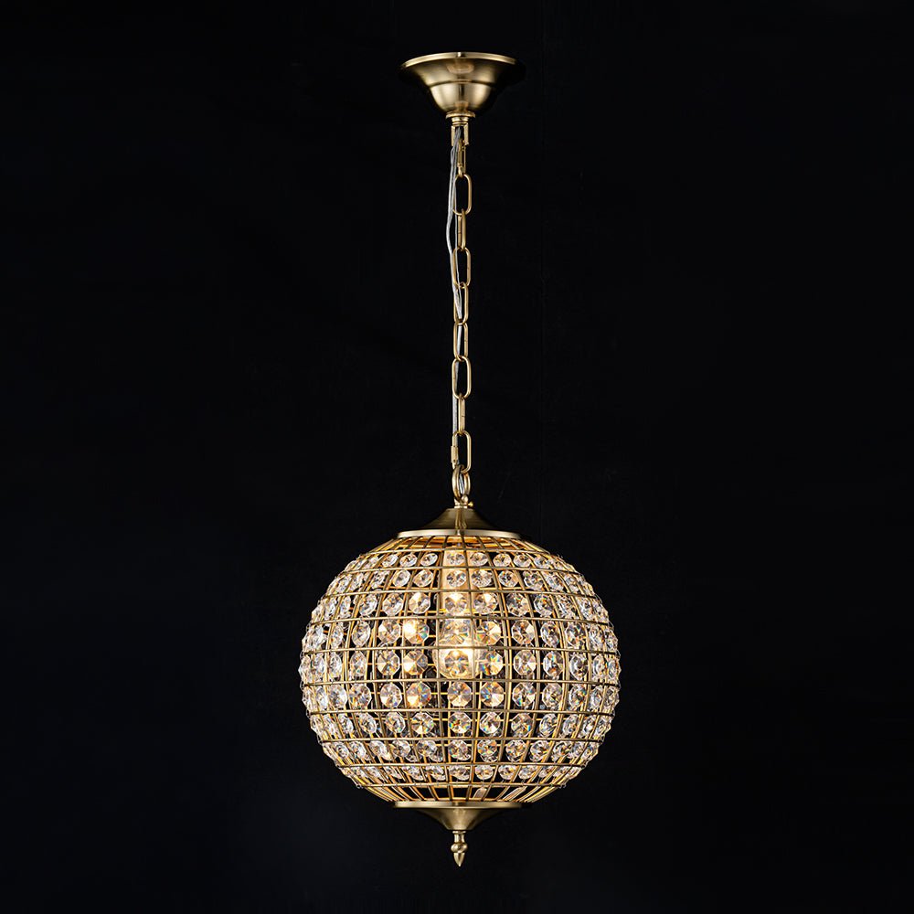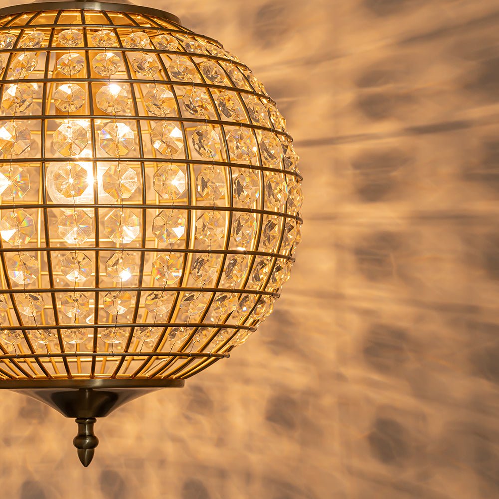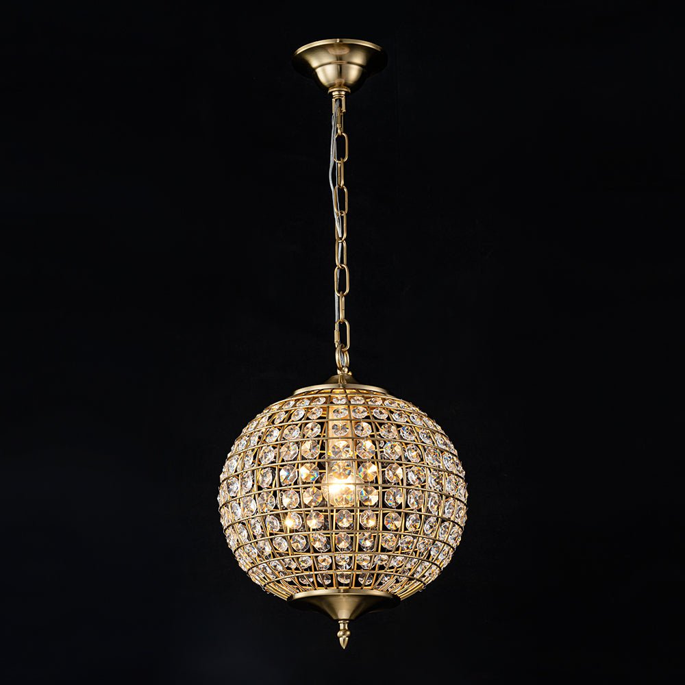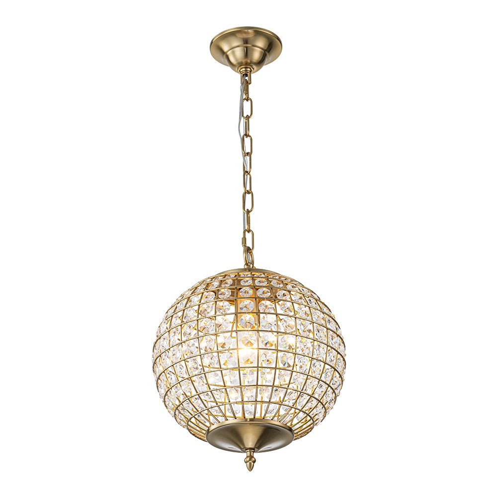 Glamourös und modern • Metall- und Kristalldesign • 1-flammig • Antikmessing-Finish • Kugel-Kronleuchter • CE-gelistet