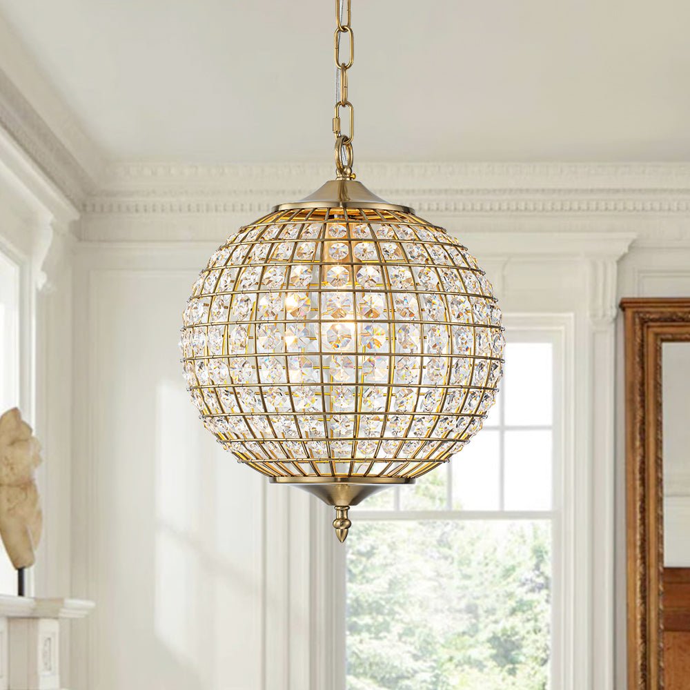 Verleihen Sie jedem Raum – vom Wohnzimmer bis zum Eingangsbereich – mit dieser eleganten 1-flammigen Kristallkugel-Pendelleuchte einen Hauch von Glamour. Der offene Metallrahmen in Antikmessingoptik ist mit facettierten Kristallprismen verziert, die das Licht brillant einfangen und reflektieren und so funkeln. In der Mitte sitzt eine einzelne E12-Kerzenleuchterbirne (nicht im Lieferumfang enthalten) und wirft einen warmen Schein durch das schimmernde Glas. Dekorative Metallakzente krönen die Pendelleuchte oben und unten, darunter ein markanter Abschluss für zusätzlichen Charme. Das vielseitig einsetzbare Design verfügt über einen für schräge Decken geeigneten Baldachin und eine verstellbare Kette, sodass Sie die Hängehöhe an Ihren Raum anpassen können. Diese Pendelleuchte ist das perfekte Statement-Stück und vereint zeitlose Eleganz mit strahlendem Glanz.