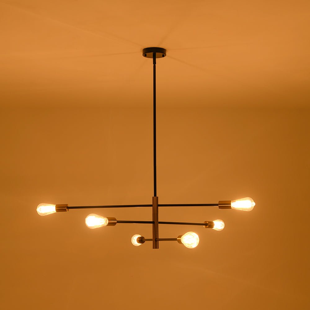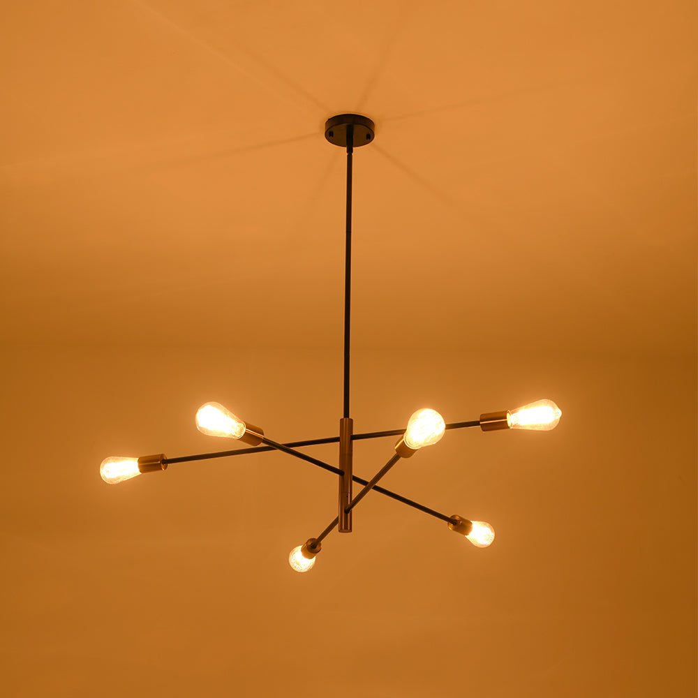 Dieser sechsflammige Kronleuchter im klassischen Sputnik-Design verleiht Ihrem Zuhause modernes Flair. Die Leuchte hängt an einem runden Baldachin und ist an sechs separaten, rohrförmigen Armen befestigt. An beiden Enden dieser Arme befindet sich eine freiliegende Glühbirne für einen modernen Look. Der Kronleuchter ist für Glühbirnen bis zu 25 Watt ausgelegt (nicht im Lieferumfang enthalten). Diese Leistung ist auch mit Dimmschaltern (nicht im Lieferumfang enthalten) kompatibel, sodass Sie die Helligkeit in Ihrem Raum individuell steuern können.
