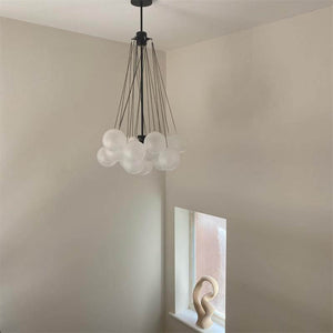 Mid-Century Modern Opal White Glass Globe Chandelier