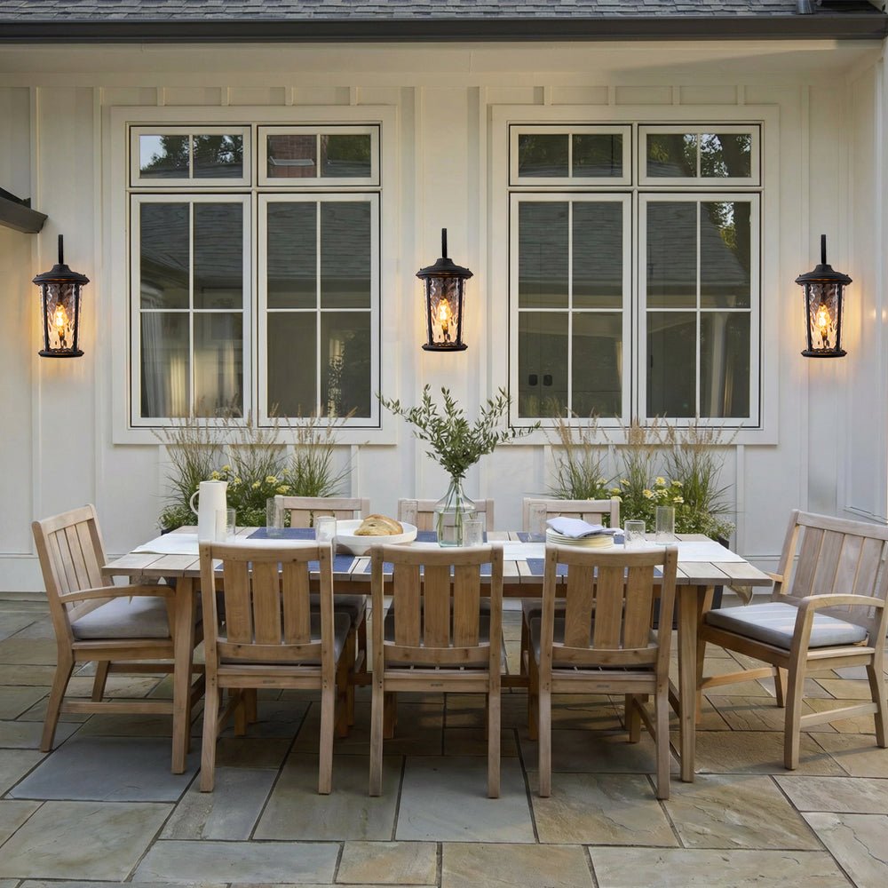 Modern • Hammer Glass • Lantern • Wall Sconce • Black Finish • IP20 Waterproof Rating • Outdoor Wall Light