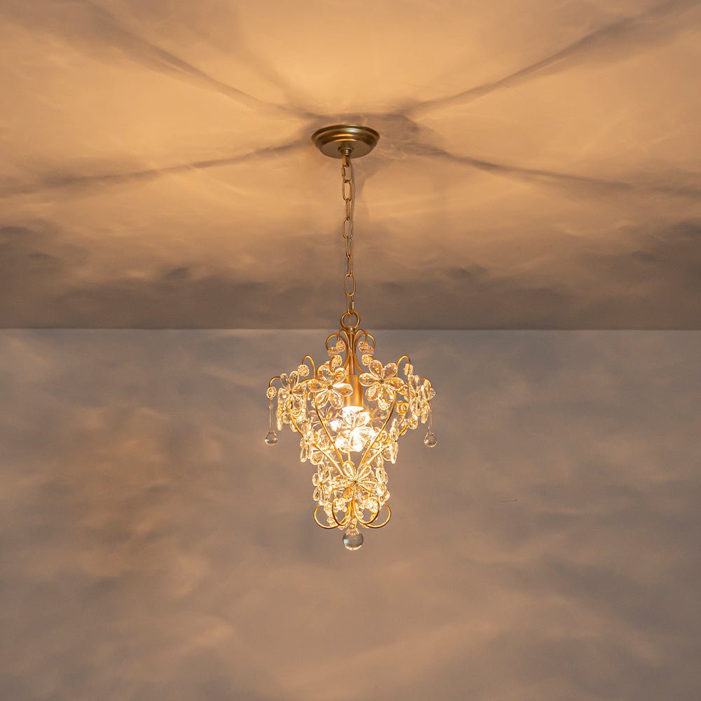 Add a touch of European charm to your space with this petite crystal chandelier. Its shimmering crystals catch and reflect the light, bringing a luxurious sparkle that suits both classic and modern interiors. Perfectly sized for intimate areas like bedrooms, entryways, dressing rooms, or even a vintage-inspired balcony, it delivers both style and illumination in one elegant package. Designed with easy installation in mind, this compact chandelier brings instant refinement wherever it's installed.