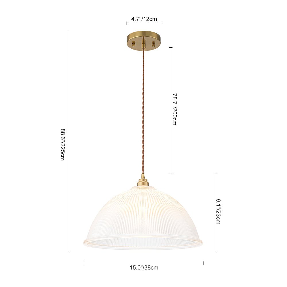 This pendant light pairs practical illumination with a refined decorative touch, making it a versatile addition to many spaces. Its dome-shaped shade offers a timeless silhouette, helping spread light softly and evenly throughout the room. What truly sets this fixture apart is its clear, ribbed glass. The vertical grooves introduce subtle texture and catch the light in a captivating way—casting delicate patterns that enrich the atmosphere when the pendant is switched on. Because the glass is fully transparent, it brightens the room generously while still creating a warm, inviting glow.