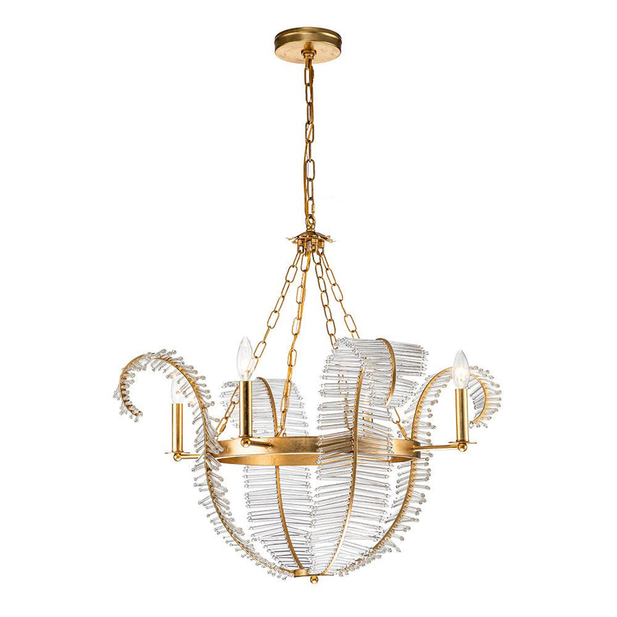 Glam Modern Style • Crystal Glass • Brass Finish • Four Lights • Leaf Design